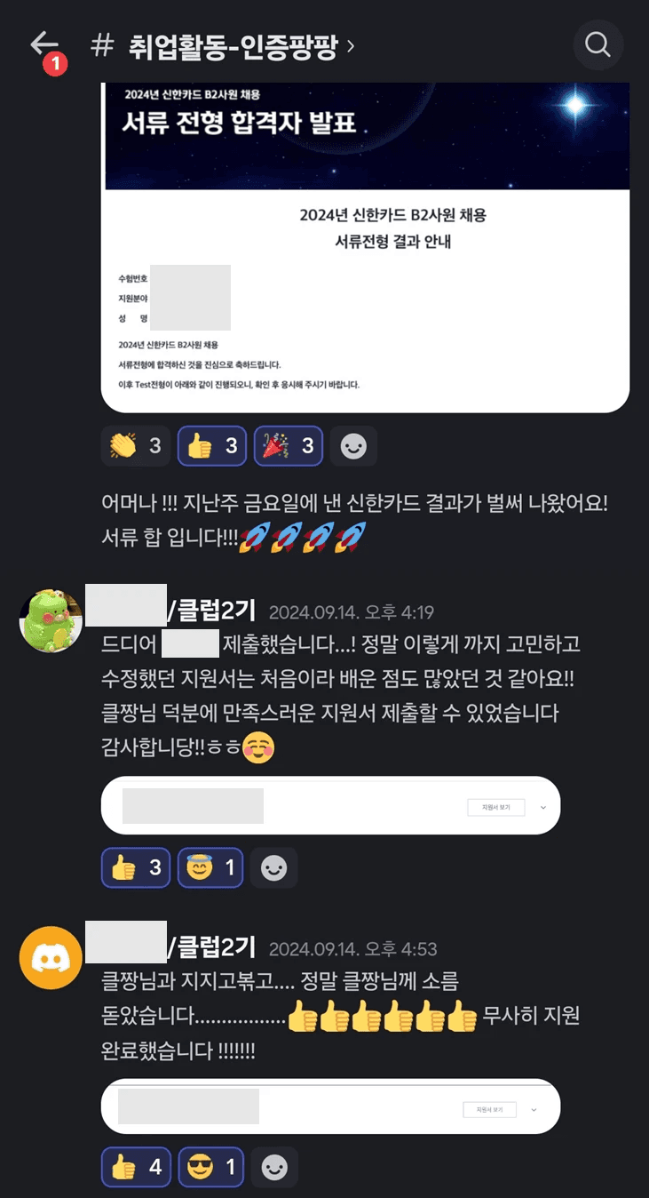 이런 식으로 서로의 취준 현황을 공유했죠.