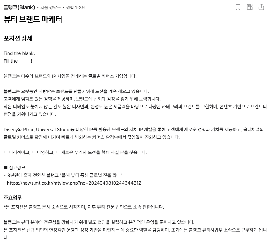 '블랭크코퍼레이션'의 뷰티 브랜드 마케터로 이직 성공!