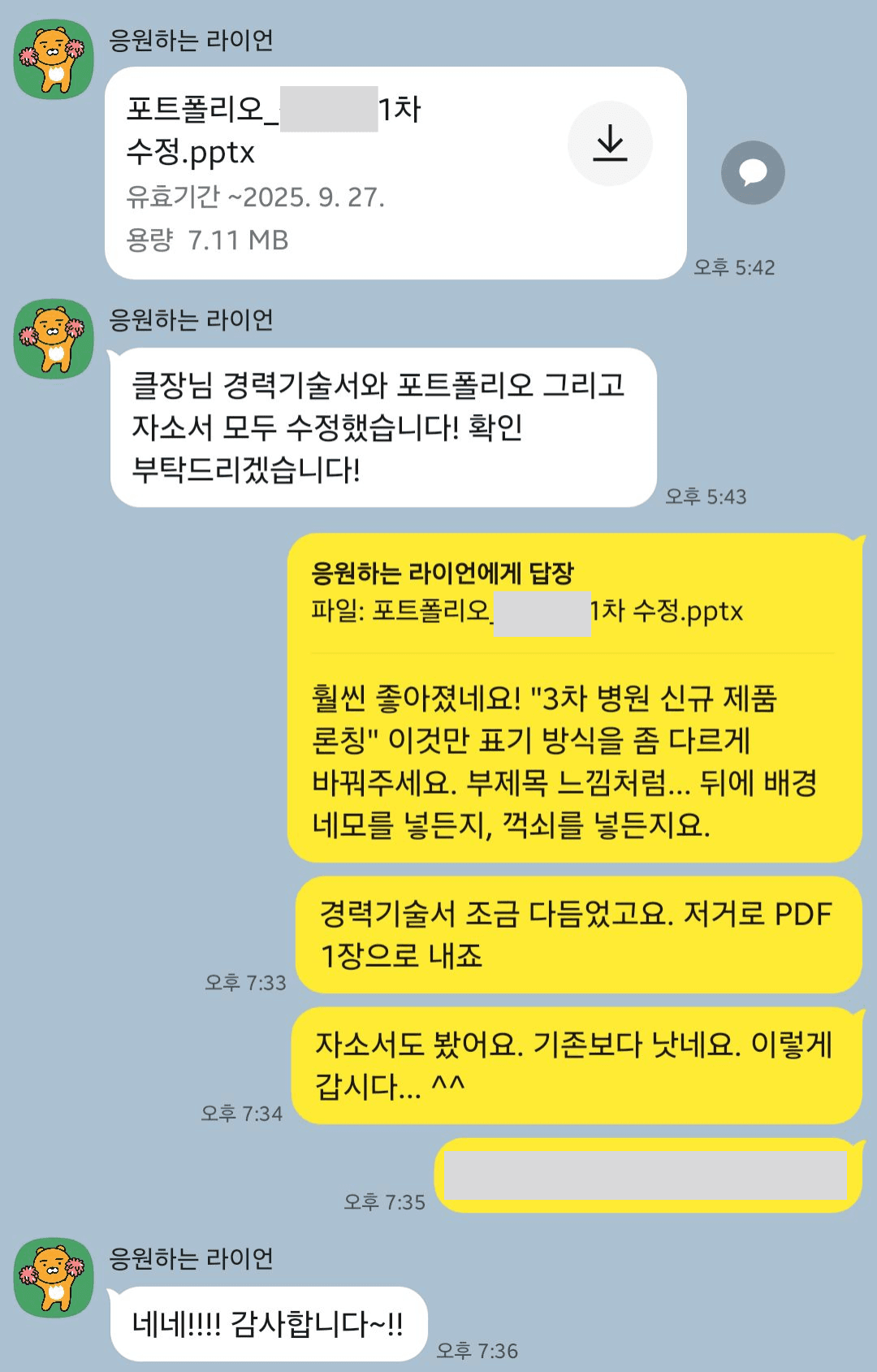 그런데 이런저런 사정을 들어 보니까, 퇴사 이유와 이직 목표가 납득이 됐어요. 퇴사를 응원한다고 얘기해줬죠. 그랬더니 저한테 물어보더라고요. "멘토님 이번에도 저와 취준 여정 함께 해주실 수 있을까요?"